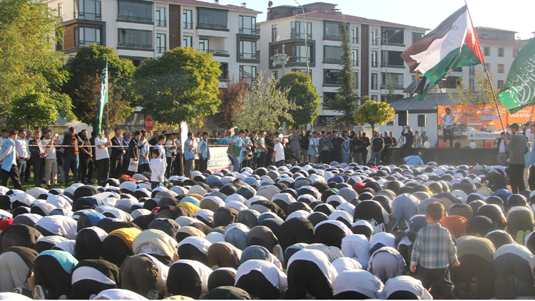 Yüzlerce namaz aşığının katıldığı program, Kur’an tilaveti ile başladı. Ardından Gazze için ilahi ve ezgiler seslendirildi.