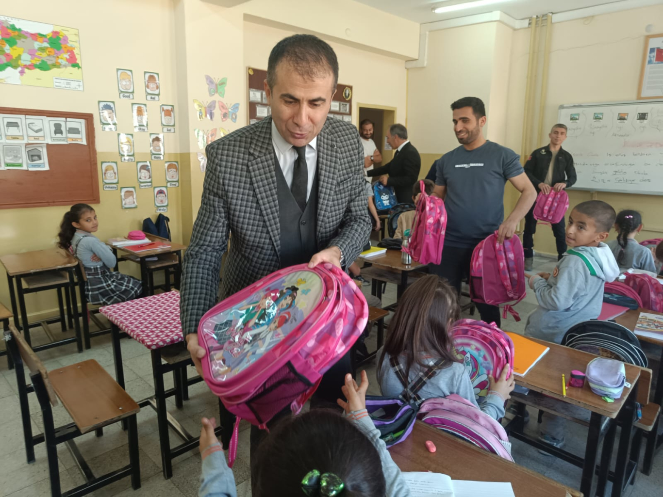 Kaymakam Adnan Doğan, 28 Ağustos ile Mehmet Akif Ersoy ilk ve ortaokullarını ziyaret ederek öğrencilere okul çantası ve kırtasiye malzemelerini dağıttı.